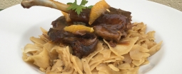Konfitált libacomb káposztás tésztával és narancsos szósszal